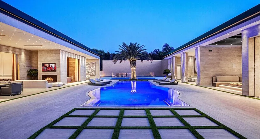Gre za vilo, ki je prava mojstrovina sodobnega luksuza. Razprostira se na skoraj 1500 kvadratnih metrih bivalne površine in vključuje vse, kar si lahko zamislite: od sedmih spalnic, 14 kopalnic, zasebnega kina, fitnesa, elegantno urejenega bazena do kuhinje in več sob za osebje. Dom je bil zgrajen v sodobnem minimalističnem slogu z elementi prestiža, kot so marmorne površine, steklene stene in ambientalna razsvetljava.