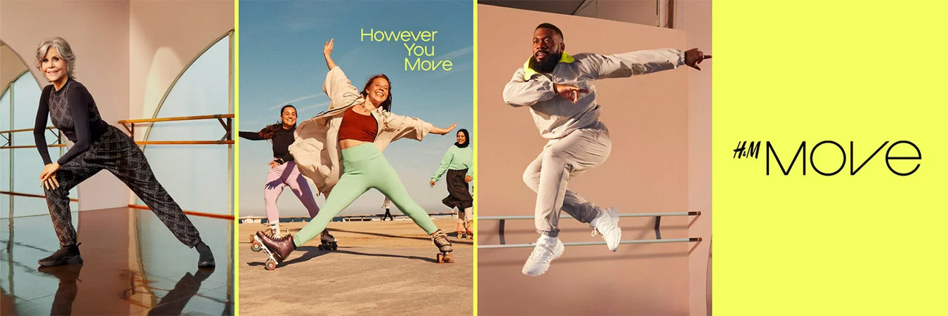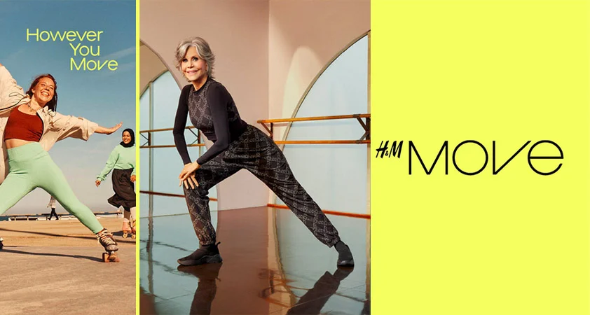 H&M Move začenja globalno kampanjo za vadbo, ki jo bosta vodila gibalca – ikona fitnesa Jane Fonda in priznan koreograf JaQuel Knight. V predstavitvenem filmu Jane Fonda ponovno prevzame vlogo inštruktorice vadbe in povabi svet h gibanju. JaQuel Knight se ji pridruži pri vodenju te medgeneracijske vadbe, ki slavi vse oblike gibanja in gibalce – od zelo spretnih do radostno igrivih.