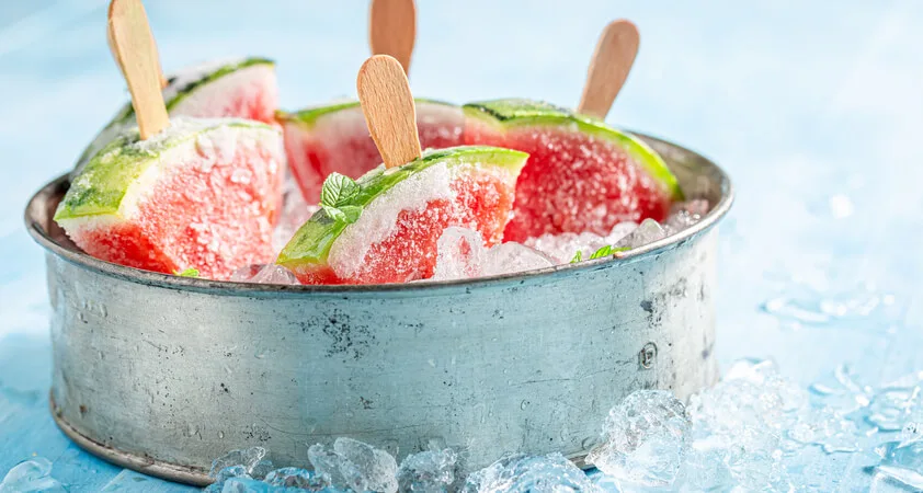 Osvežilne sladice z visoko vsebnostjo vode niso le okusna rešitev za poletne dni, temveč tudi zdrava izbira za vse generacije. Preizkusite lubenični sorbet, zamrznjene grozdne bombončke ali svoje najljubše sadne lučke in ohladite svoje telo.