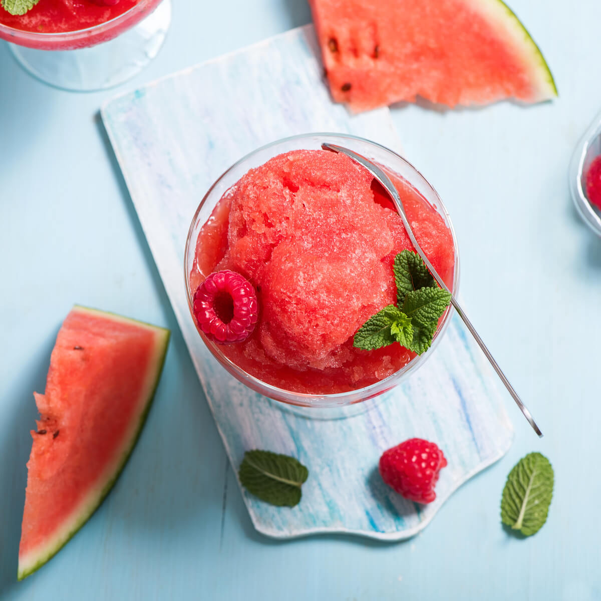 Priprava: Kose lubenice zamrznite, jih nato zmiksajte z limetinim sokom in po želji dodate med. Postrežete takoj ali ponovno zamrznete za kompaktnejšo teksturo. Ta naravna sladica je brez dodanega sladkorja in popolnoma veganska.