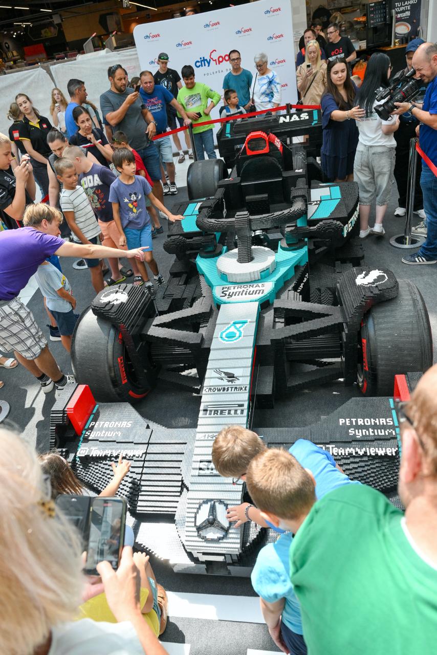 Lani so v Cityparku slovenski javnosti premierno predstavili velikanski LEGO® Fortnite® mozaik, letos pa lahko obiskovalci – podobno kot predlani, ko so predstavili LEGO® različico Lamborghinijevega avtomobila Sián FKP 37 v naravni velikosti – ponovno občudujejo repliko jeklenega konjička. Dirkalnik Mercedes-AMG F1® W15 v skoraj popolnem merilu 1:1 so izdelali iz približno 400.000 kock in tehta več kot 1.500 kg. V njegovo izdelavo je bilo vključenih 26 spretnih LEGO® oblikovalcev, inženirjev in mojstrov v LEGO® tovarni na Češkem oziroma več kot 22.000 ur dela.