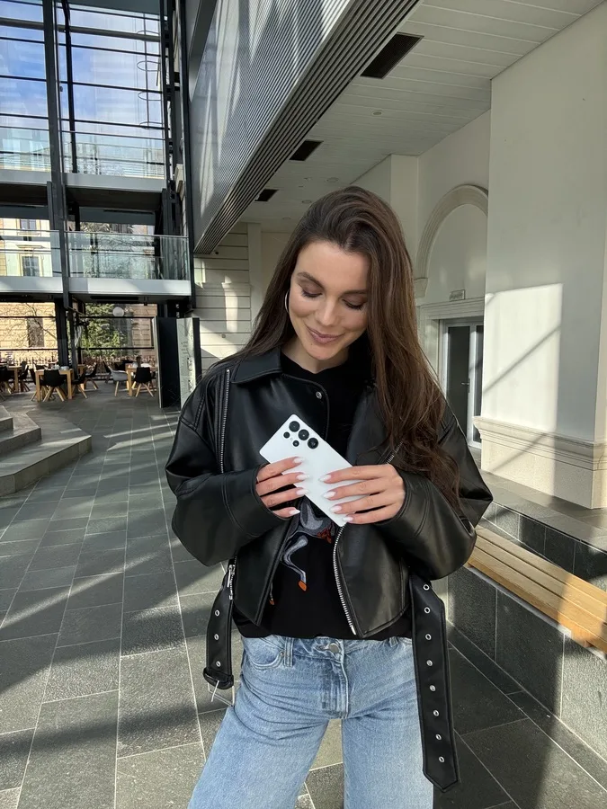 Za konec smo Vesno povprašali še, kako bi Galaxy S25 Ultra opisala, če bi bil modni kos. Odgovor je bil takojšen: »Must-have dodatek, ki naredi vsako kombinacijo še bolj vau. Res je kot pika na i celotnem looku, je eleganten, močan in s pravim ‘tech chic’ vajbom.«