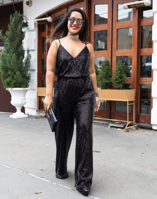 Skorajda že tradicionalna novoletna oprava. Ker je toplejši in bolj udoben od obleke, je kombinezon zelo pogosta izbira za večerne zabave. Nekaj bleščic (ali ogromno) na njem pa prav tako ne škodi, se strinjaš?