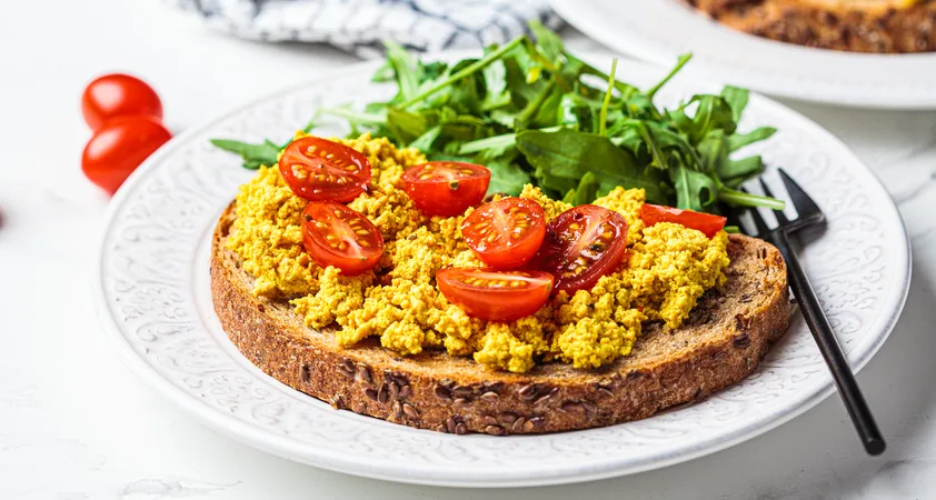 Ko se odločite za vegansko prehranjevanje, so jajca seveda na prepovedanem seznamu živil. In če ste bili tudi sami včasih ljubitelji umešanih jajc, potem boste navdušeni nad tem okusnim veganskim zajtrkom! Umešana “jajca” so v resnici umešan tofu, vendar zaradi dodatka kurkume izgledajo identično kot prava umešana jajca.