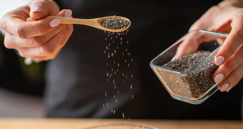 1. V kozarec stresite chia semena in dodajte vodo in sol. Dobro premešajte, dokler se sestavine ne združijo.