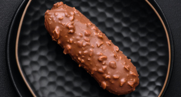 5. Vsak sladoledni datelj s pomočjo vilic na hitro pomočite v čokolado in položite nazaj na peki papir. Čokolada se bo zaradi hladnega sladoleda hitro strdila.